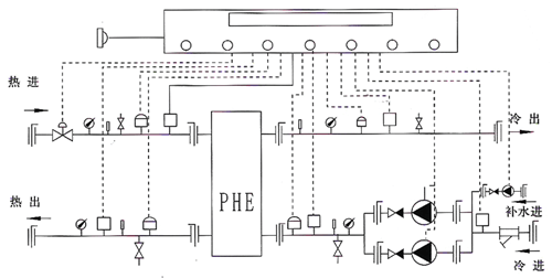 Manually control the heat exchanger unit, and manually control the water supply temperature of the secondary network of the heat exchanger unit through on-site direct reading instrument. Through the remote pressure gauge and controller, the water can be replenished automatically at constant pressure.