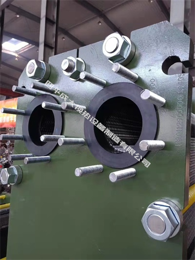 Plate heat exchanger with angular hole diameter above DN150 adopts five-point metal positioning system, and the upper guide rod has three points, which can prevent the plate from moving up and down. The two points of the lower guide rod can not only restrict the plate from moving left and right, but also ensure the complete reset after disassembly. In addition, the four-corner positioning structure ensures the gasket sealing accuracy and prolongs the service life of the plate. The five-point positioning overcomes the disadvantage that the circular beam positioning cannot compensate for the parallel expansion and contraction of the plate, and improves the working range.